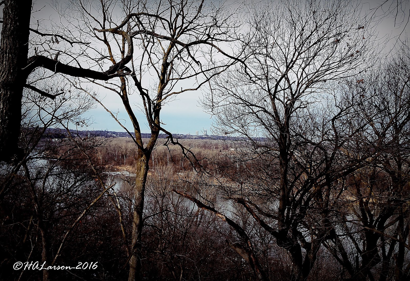 A view off the farthest end of the boardwalk. You can see all the way across and just make out the Omaha skyline, including the Desert Dome at Henry Doorly Zoo.
