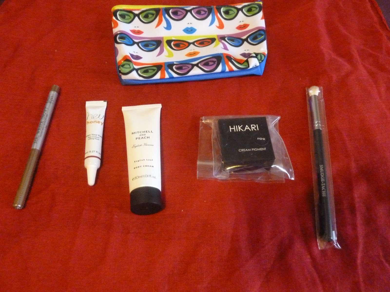 *theBalm's Mr. Write Now eyeliner in Jac. It's a brown color, and I had just been lamenting the day before that I need a brown eyeliner (I've been using an old eyebrow pencil) so this was a pleasant surprise.*hey honey's eye countour lifting fluid*Mitchell and Peach's English Leaf body cream (smells heavenly)*Hikari's cream pigment eye shadow in Mink. It's a brownish color and will go well with the eyeliner, which I'm sure was planned. *Lastly, a Beau Gachis smudge brush. I got a bunch of new brushes for Xmas, and I am excited to add this to my collection as I don't have enough really good eyeshadow brushes.
