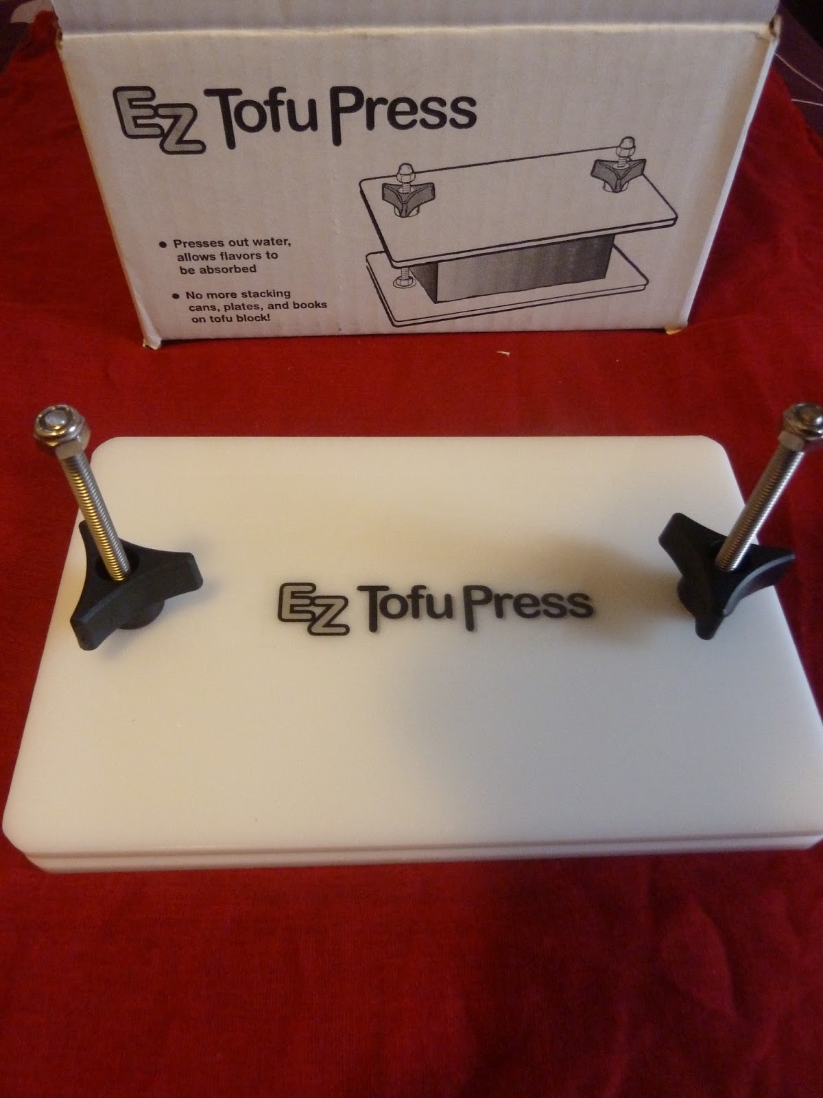 I love me some tofu, but it needs to be pressed of the majority of its liquid before using. I usually accomplish this by taking a plate, covering it in a small stack of paper towels, setting a block on tofu on that, covering it with another stack of paper towels, adding another plate on top of this upside-down, and then stacking a bunch of cans on top. If I'm not careful, my cans come crashing down and my tofu quits pressing! The remedy? An actual tofu press! I can't wait for my next tofu scramble.
