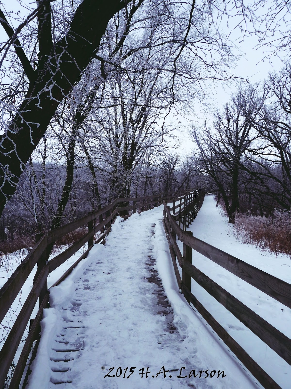 Yesterday, my folks were in town for an appointment, and so they stopped over afterwards to spend some time with me and give the kids their Christmas gifts before heading back home. We had a few hours to kill before the kids got home and so I drug them out for a quick visit to Hitchcock Nature Center over in Crescent, IA. It was brisk, but gorgeous. No matter what season, I love the beauty of that place.