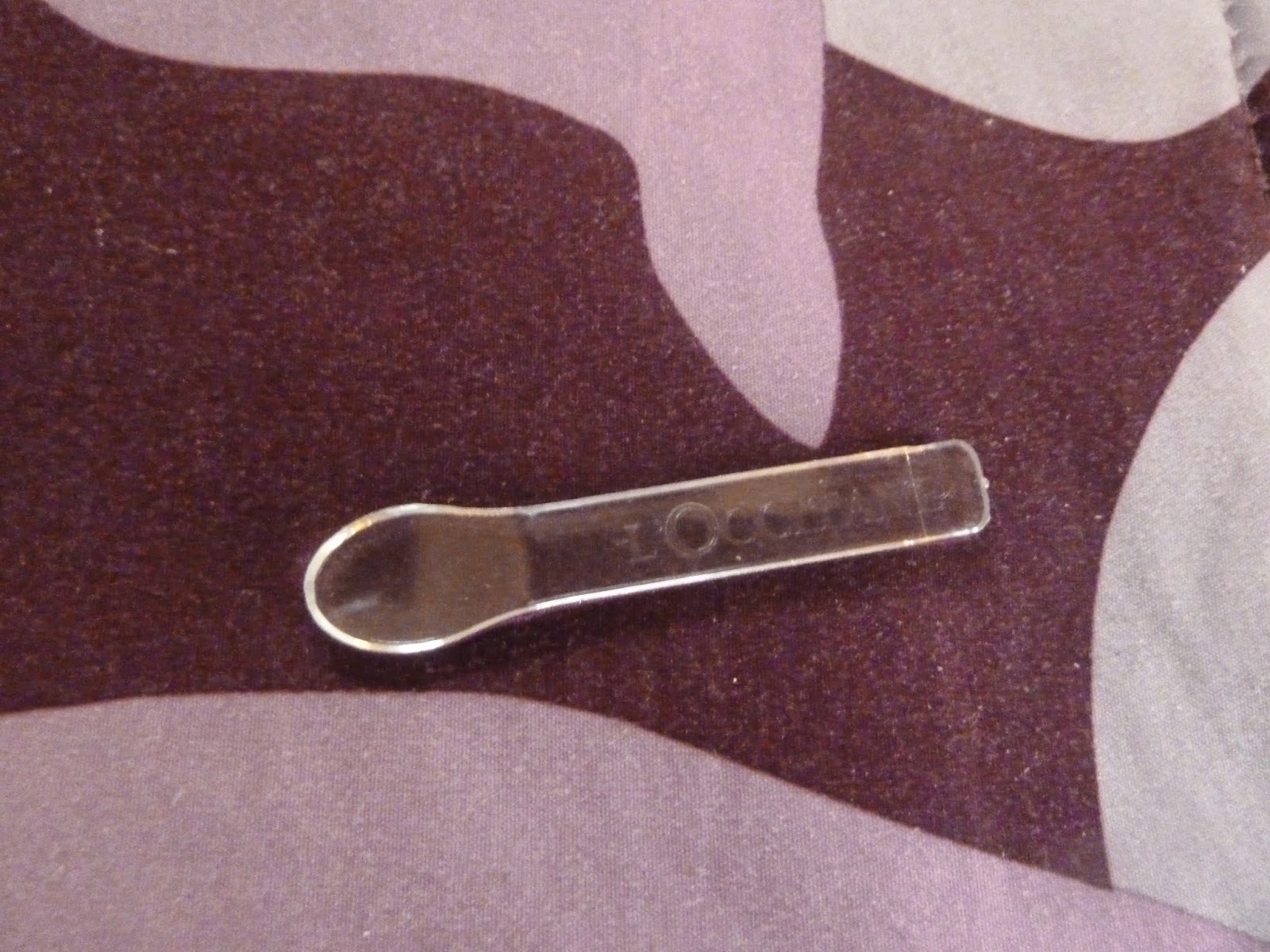 This is the tiny spoon they gave me to use with the "blue" Precious Eye balm. One needs a chocolate chip-sized portion.