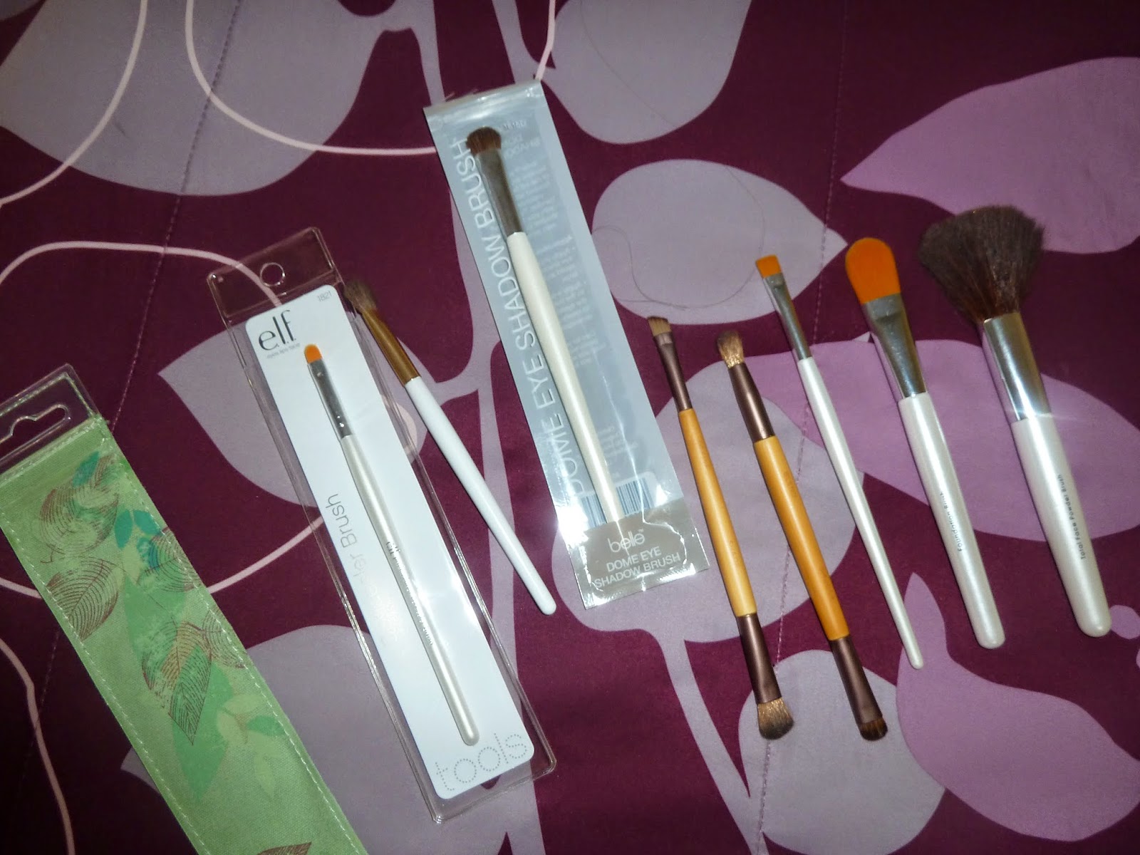 The various brushes I use. Elf makes a quality, inexpensive product. I have a couple of the eco tools that are made with real hair as well, and then I few others I found at the dollar store.
