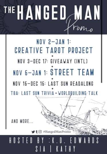 ANYWAY. Fast-forward a bit; skip over months of likes and comments and doing heart-eyes at Last Sun fanart – commiserating over publishing delays and recommending LS to everyone who’d listen – skip (for now) over Kathy’s genius masterplan that you’ll hear more about another day – to this past Thursday. Wherein, in part for being a hardcore fan, and a cheerleader, and even more for working with Kathy on her masterplan, Keith sent me an e-ARC of Hanged Man.