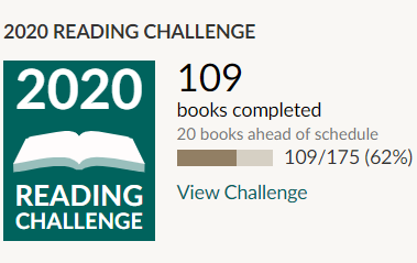 Since I started keeping track of how many books I read a year, my record is 313. (That was waaay back in 2014). Since I started working full-time, that number obviously had to drop (sigh). But though I set myself lower goals now, I still aim to beat them (last year I managed 205 books, with a goal of just 150). I think I’m doing okay for 2020 so far – especially considering I’ve been having trouble concentrating and finishing the books I start!