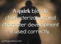 It's possible to get so enamored of a character's quirk that you try to build a story around it, and that's fine, as long as it does support a story. But I do love character quirks and how they aid my remembering a character as I read. Sometimes it's an event in a character's life. How she once cut school to go catch crayfish in a creek and instead caught an unopened letter.
