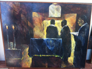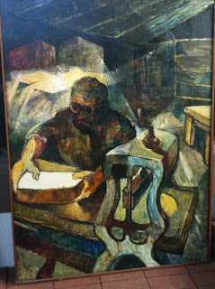 This painting is "Joe Funk" and is of a printmaking friend of my father's, a man he shared a studio with in San Pedro, where I grew up. The Exodus Gallery contained the oddest group of people I ever met. You had to climb an exterior ladder to get into the second floor space -- which is probably why the artists could afford to rent it -- and it was a wonderland of strange canvases, tilted pieces of pottery, and best of all an easel with a blank canvas for me to play on. That rich silence of concentration and inspiration floated around the vast space and started me on this journey.