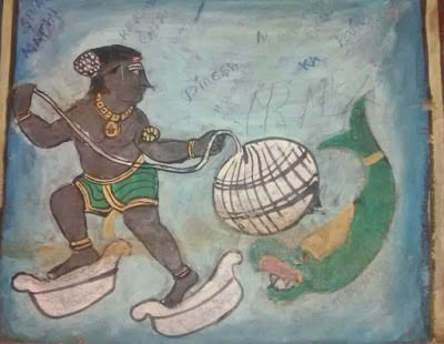 A painting that is perhaps 800-1000-years-old On display in the Thousand-Pillared Hall at Meenakshi Amman Temple, Madurai