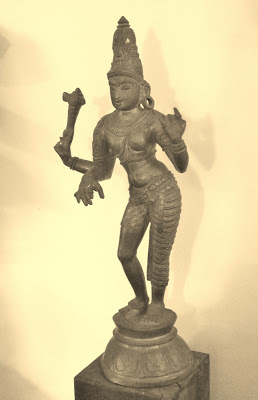 I found Her & Him - Them - hidden in the back in a dusty corner of a large shop in the temple town of Kumbakonam, Tamil Nadu. A Chola-style Ardhnarishvara, who now adorns a small corner in my home.