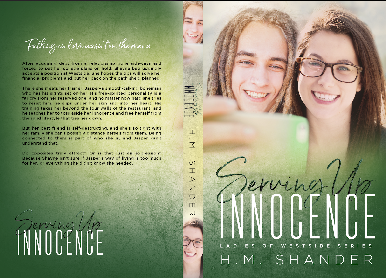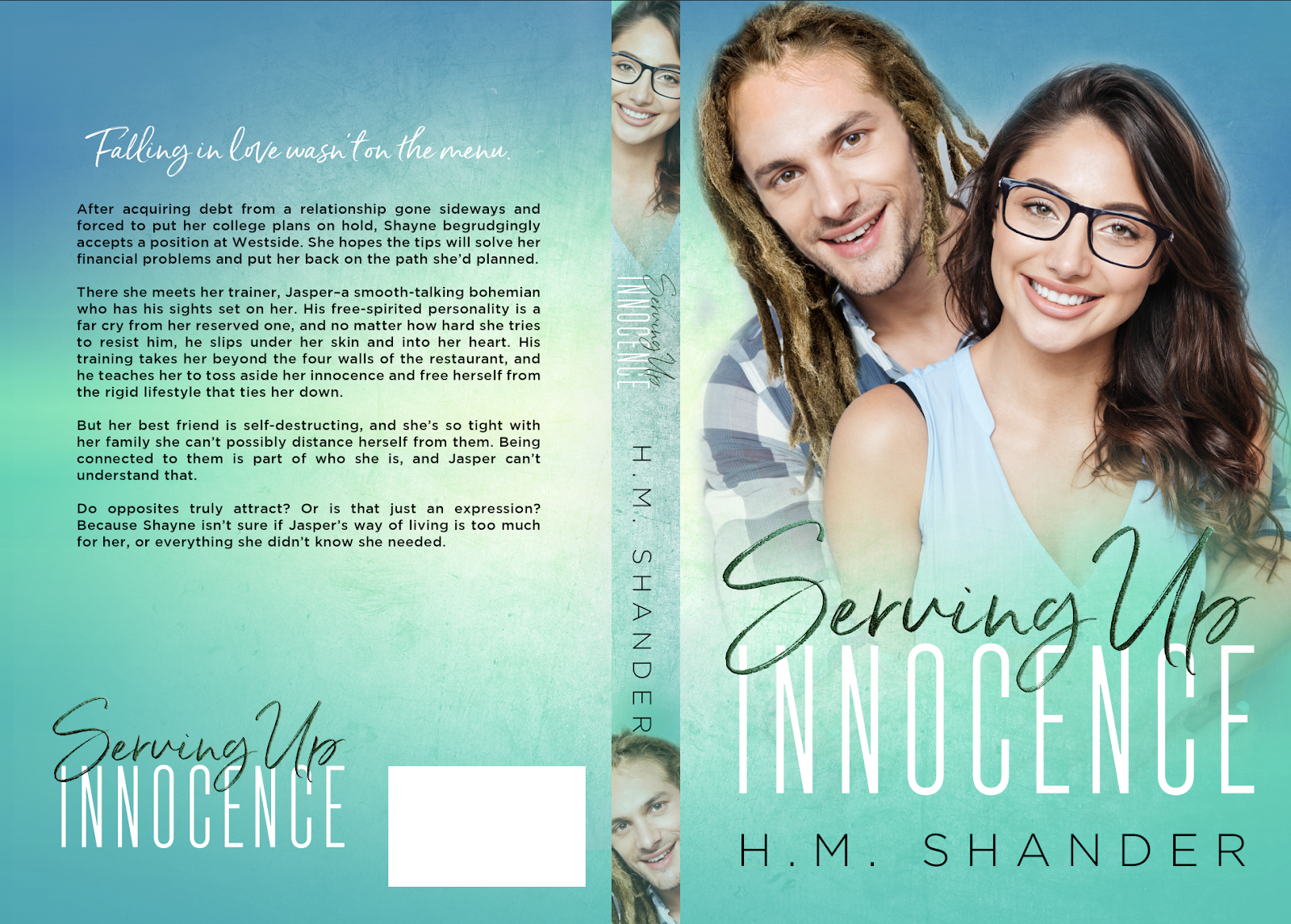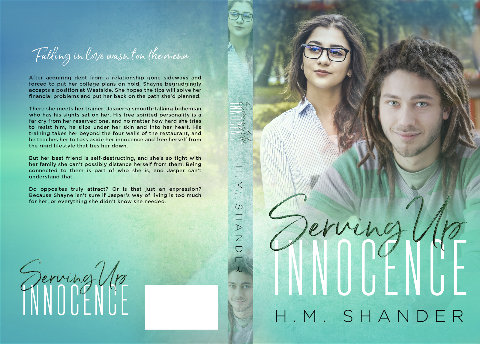 I spent HOURS pouring through the photos. For Serving Up Innocence the male MC has dreads and is Caucasian. The female MC has darker hair. Finding a photo with these two was nearly impossible, especially characters that are in their early 20s. Unable to find a couples photo, I did find two individual, and sent the stock numbers off to Cassy.