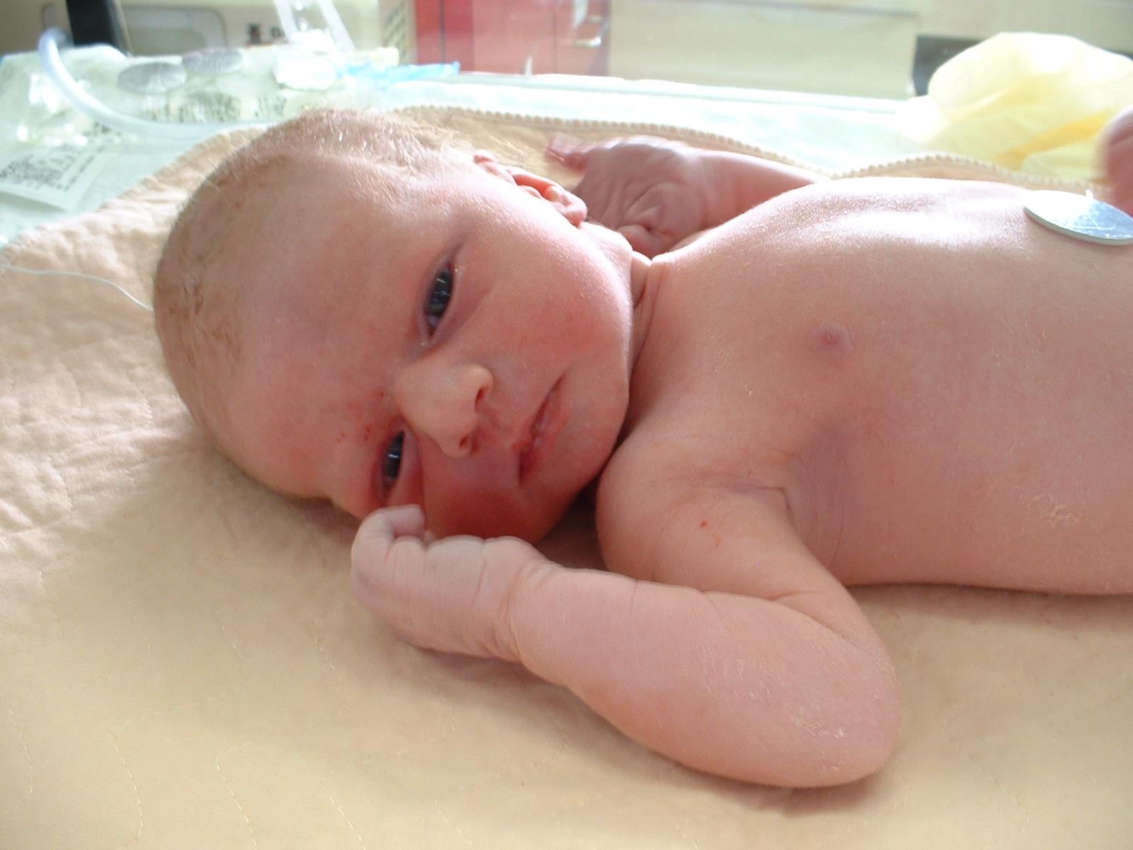 My Beautiful Baby - hours oldA soft cry filled the room. My baby was alive, but the cry sounded as if it came from thirty feet away instead of an arm's length. The anesthetist asked if she could announce the sex of the baby, to which the OB agreed, and she told us "It's a BOY!".