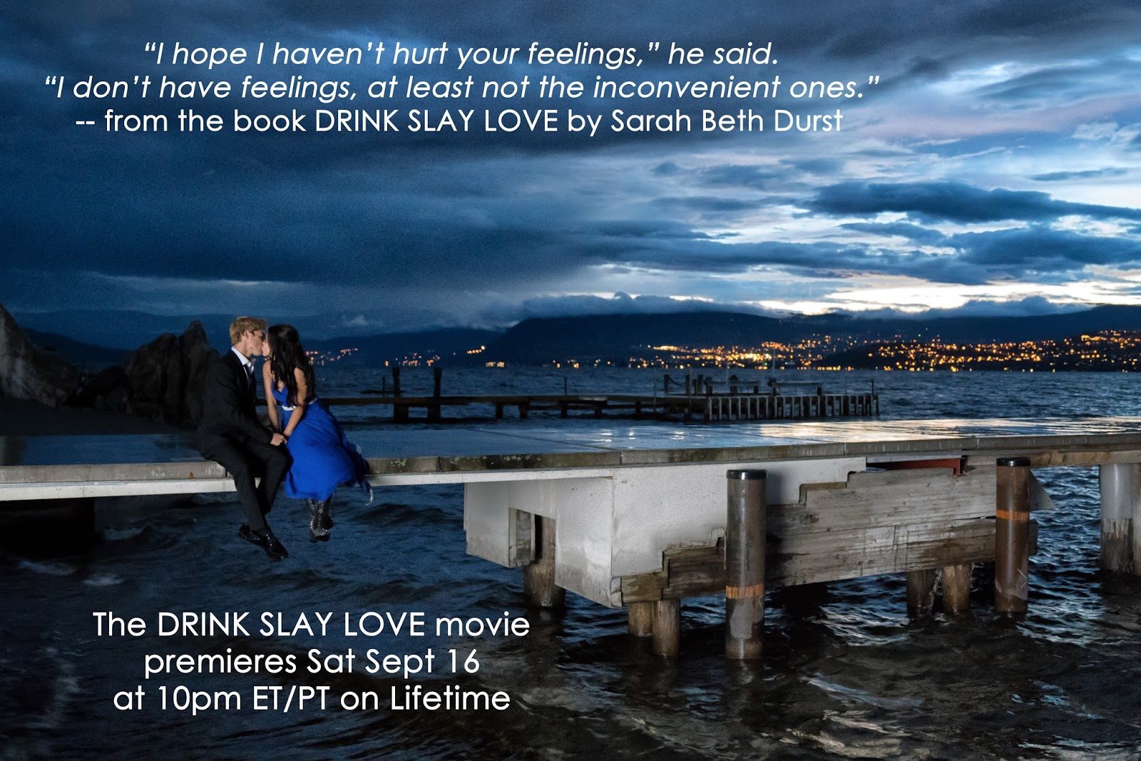 Eeeeeeeeee!!!!! The TV movie based on my YA book, DRINK SLAY LOVE, just got an official air date! Premieres next month -- Saturday, September 16 at 10pm ET/PT on Lifetime!!!