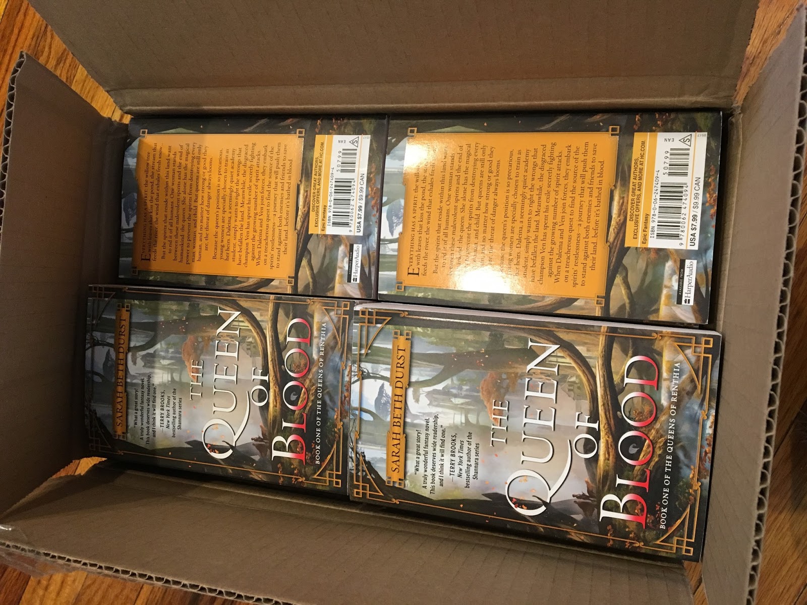 I squealed when I saw them. Really loudly. Loud enough to startle the cat. You see, when I was a kid, I was only allowed to buy mass market paperbacks, so that's the format that all my childhood favorites are in (like The Blue Sword, The Pawn of Prophecy, Dragonsong, Arrows of the Queen, The Sword of Shannara, The Summer Tree...). So it feels extra special to have my book look just like those.