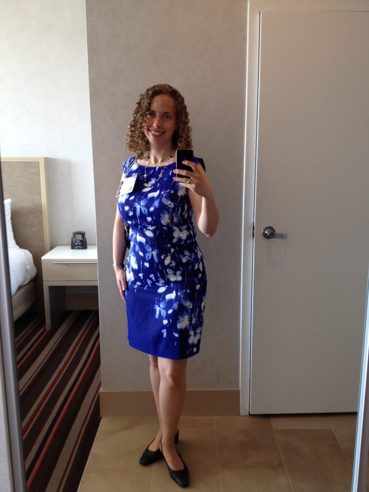 Time for my dress! I’d actually starting regretting the fact that I’d gone with a cocktail dress rather than a ball gown or a floor-length evening gown for the banquet. Alethea even kindly offered me a tiara to make me feel better -- thank you, Alethea! -- but I decided to stick with my own jewelry and once I put on my dress, I remembered why I'd picked it. It makes my eyes look totally Fremen blue.