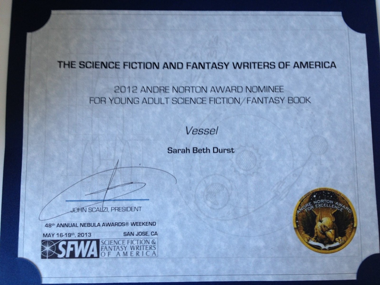 This weekend, I flew to San Jose, California, for Nebula Awards Weekend. Vessel was a finalist for the Andre Norton Award, and I was not missing out on the free unicorns. (As everyone knows, all award nominees automatically receive three free unicorns. If you show up, you are given the ones that are housebroken. If you don't, they ship you the leftover unicorns, and believe me, the bill for cleaning rainbows out of carpets is HUGE.)