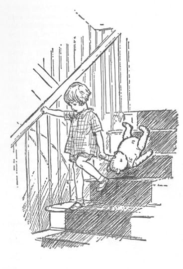 "Here is Edward Bear, coming downstairs now, bump, bump, bump, on the back of his head, behind Christopher Robin. It is, as far as he knows, the only way of coming downstairs, but sometimes he feels that there really is another way, if only he could stop bumping for a moment and think of it"