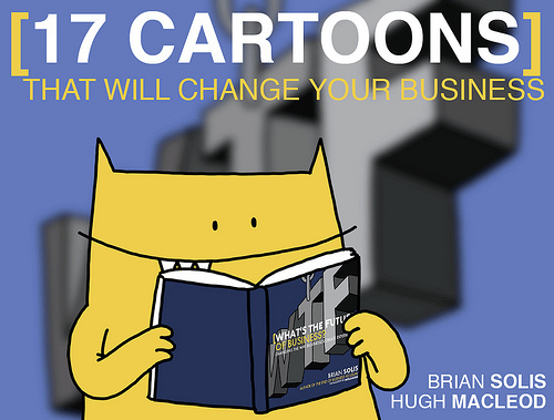 When you start with a different question you get a different result. And, that’s the point. This is a time for innovation and reinvention. I partnered with my friends at Mekanism to create what is a digital UI in printed book form. We call it an analog app. It’s rich with visuals, infographics, and also cartoons that summarize each chapter drawn by my dear friend Hugh MacLeod (@gapingvoid).