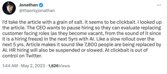 According to Bloomberg, IBM expects to pause hiring for roles as roughly 7,800 jobs could be replaced by #AI.