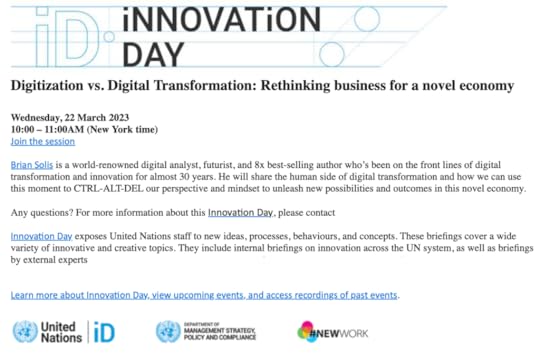 Brian Solis will present to leaders at the United Nations as part of its Innovation Day on March 22nd, 2023.