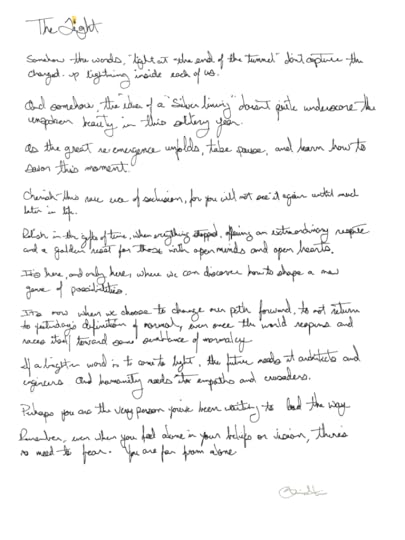The LightSomehow the words, “light at the end of the tunnel” don’t capture the charged-up lightning inside each of us.