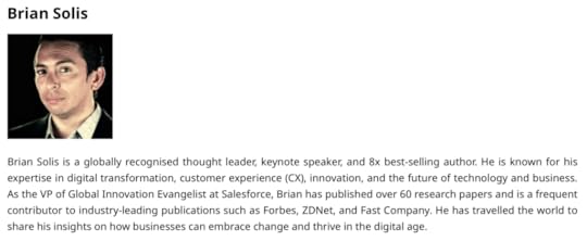 Brian SolisBrian Solis is a globally recognised thought leader, keynote speaker, and 8x best-selling author. He is known for his expertise in digital transformation, customer experience (CX), innovation, and the future of technology and business. As the VP of Global Innovation Evangelist at Salesforce, Brian has published over 60 research papers and is a frequent contributor to industry-leading publications such as Forbes, ZDNet, and Fast Company. He has travelled the world to share his insights on how businesses can embrace change and thrive in the digital age.