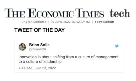 “Innovation is about shifting from a culture of management to a culture of leadership.” via The Economic Times