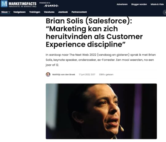 The post MarketingFacts – Brian Solis (Salesforce): “Marketing kan zich heruitvinden als Customer Experience discipline” appeared first on Brian Solis.