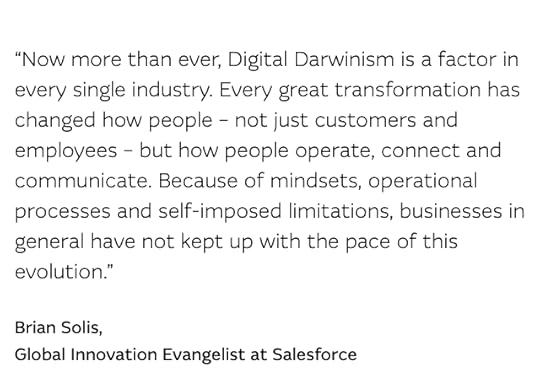 “Now more than ever, Digital Darwinism is a factor in every single industry. Every great transformation has changed how people – not just customers and employees – but how people operate, connect and communicate. Because of mindsets, operational processes and self-imposed limitations, businesses in general have not kept up with the pace of this evolution.”