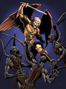 Davian and Marcus chased a mornacht into a house. “How many do you think are here, sir?” Marcus yelled as he jumped on one before it could stab a young cherubian girl. Marcus twisted its neck and threw it aside.
