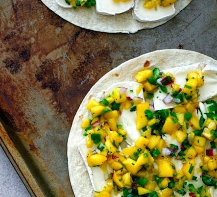 Spicy Brie and Mango QuesadillasI get seafood and Yvonne get's her two favorite food groups: Brie Cheese and Mangos.