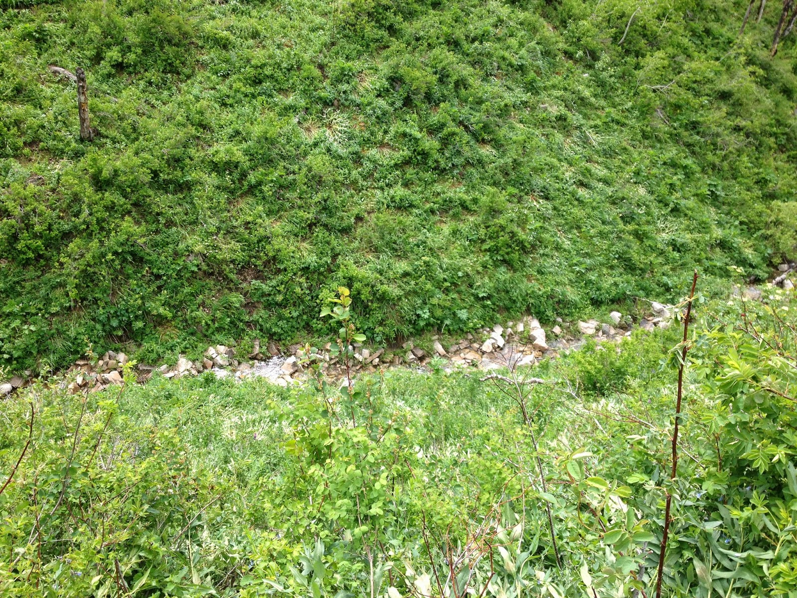 The trip down was much easier, although six kilometers downhill was tough on my joints. I passed several other hikers and dodged some bikers who were descending at insane speeds (but looked like fun). I saw a chipmunk, some long red weasel who was too fast for me to take a picture of, and a dark blue Stellars Jay.