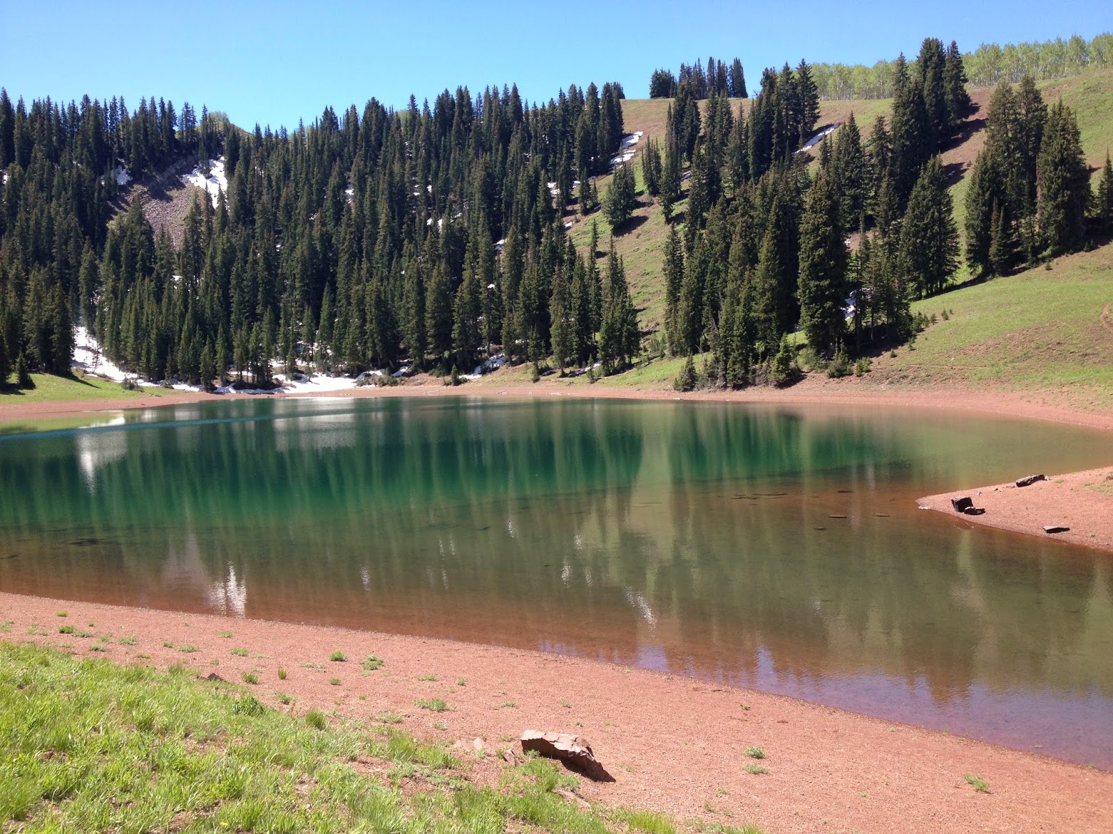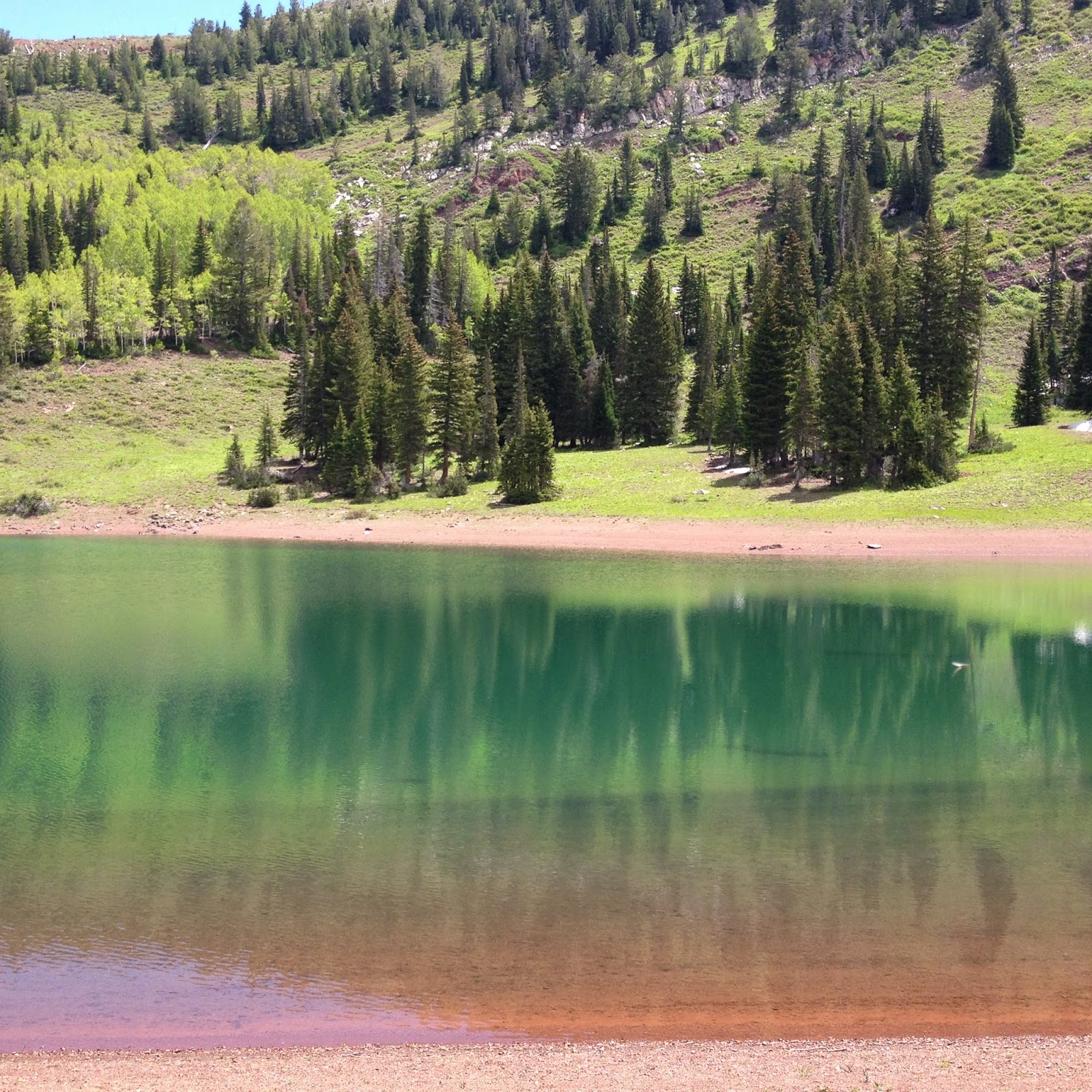 Desolation Lake was beautiful. It had a glacial blue quality to it, but it also had a green tinge and a rust brown tinge. Not sure if these were from the reflections or what was in the water. I tried to capture it in several pictures. The lake itself is fed from snow melt and has no other source.