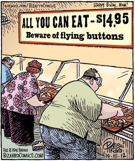 FREEBEE - And here's a freebee. Always leave food on your plate. My wife was told that she had to finish her meal because there were starving kids in Africa. My mom said the same thing. My wife however, offered to box it up and mail it, which is classic. But even so, there's no way you're helping starving people by overeating. It's ridiculous. (Note to Mom who is probably reading this and getting a little irritated right now -- I am not calling you ridiculous). If you put more food on your plate than you need, then leave it there. Don't feel forced to eat it. In fact, step away a little hungry and have another glass of water. Trust me. It works. I've lost 40 pounds to prove it.