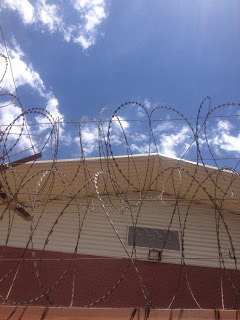 As I step outside and plant my feet on frienly ground, looking at my razor-wire twisted horizon, I take a deep breath.