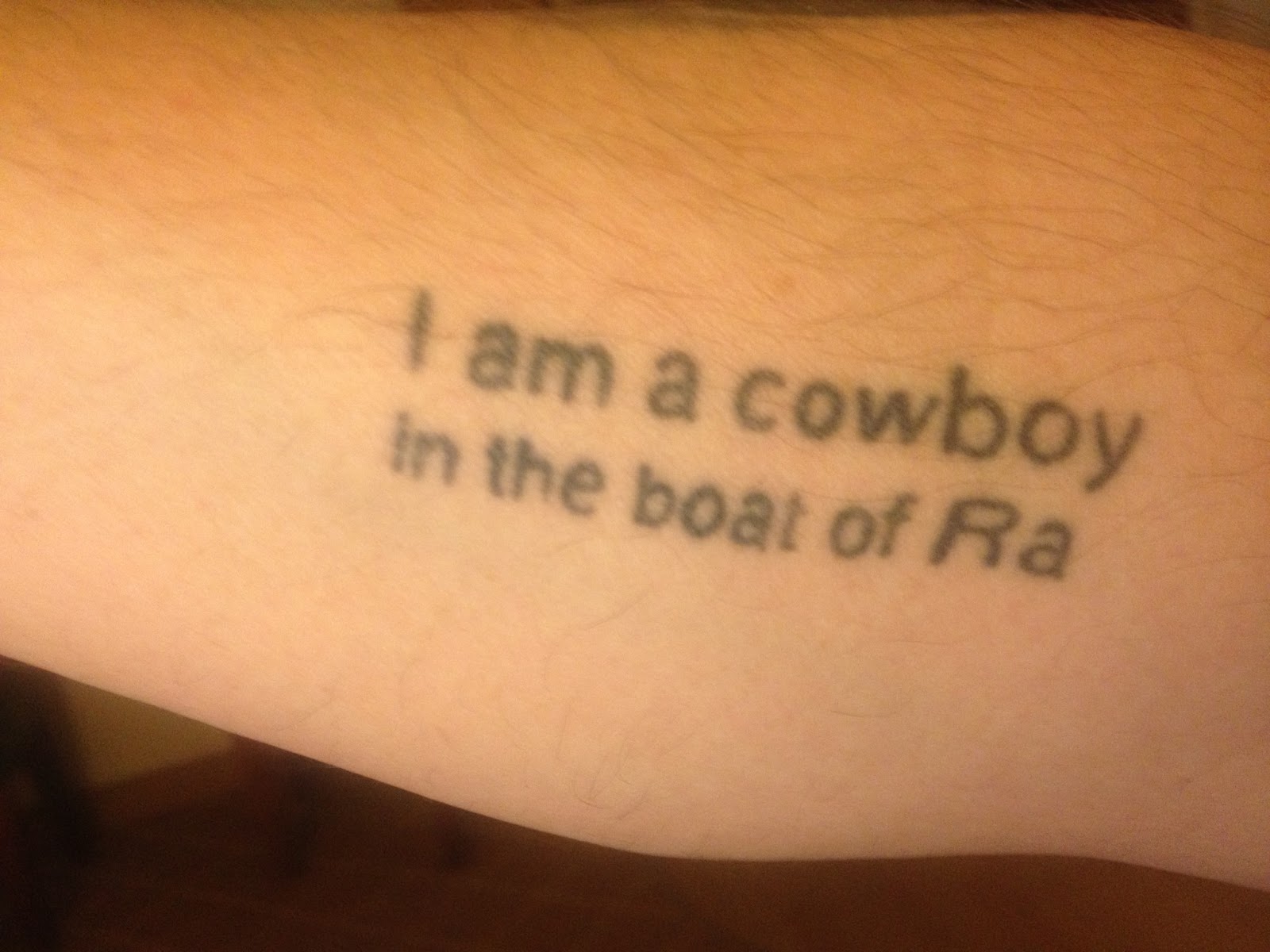 I am a cowboy in the boat of Ra. Lord of the lash,