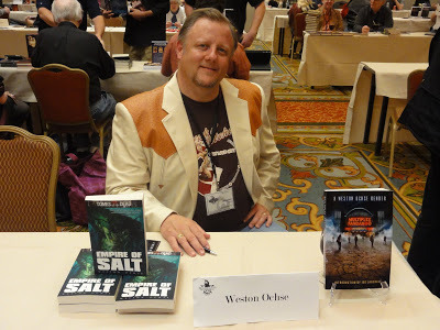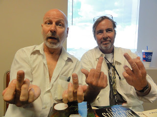 Oooh the fun and games at conventions! Lol. The thing was that I was in the middle of my Rock Star Reading of Playlist at the End, which appeared in Shock Totem Magazine recently. The real question was, where was Ed?Shane McKenzie was cool to meet. Gotta love somene who tweets - Weston was a bad-ass gross-out bouncer. Elvis glasses, baby! Shane won the Gross Out Contest with a very well-wrought tale of grandma sex--- barf!Great convention. The highlight, of course, came on Saturday when my agent, Robert Fleck, brought me the St. Martin's Press contracts for SEAL Team 666 for me to sign. I can be seen here doing just that-- Pictures taken by Rose O'Keefe. Special thank to Eunice Magill for the wine. And to Walter Danenhower and Bob Meracle for being such great fans!