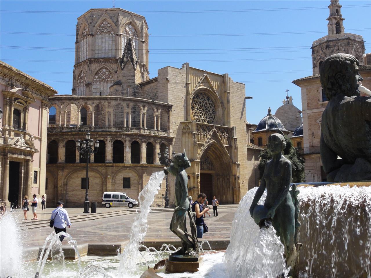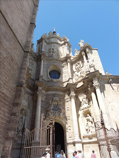 So the I ducked out of the last half hour of the conference, changed and began walking in the direction of the town I'd heard it was. Past the river park where they relocated an entire river and made a park the length of the city. Past an old castle entrance. I really didn't know where I was going, but I somehow unerringly arrived at the Plaza of the Sacred Virgin, then around the corner found the awe-inspiring and imposing 1270 edifice called Valencia Cathedral or The Cathedral of the Chalice.