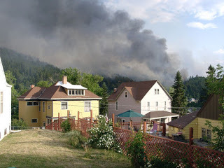 We evacuated once after seeing the line of smoke and burning homes march our direction, then thought everything was okay and de-evacuated. That's a new word, by the way. De-evacuate: To naively return to your residence when you think the fire is no longer a danger.