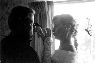 We went back down the hill, changed into our reception clothes, cut the cake, made sure that folks were happy and were about to have our first dance, only to be interrupted by a plane flying low overhead, dropping water on the fire that had crested the mountain behind my parents' home. Next thing we knew, the governor was calling for everyone's evacuation.