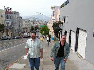 SITUATION 1. Me and fellow authors Chris Golden, Ed Lee, James Moore and Yvonne Navarro (frequently referred to as my wife) decide that Friday was a brilliant day to take a few hours off from the convention and trek to Fisherman's Wharf. Chris and Jim leave early, hiking over the San Francisco hills. Yvonne, Ed Lee and I arrive a little later by taxi. We talk over an amazing seafood dinner, tour the wharf, then decide to forego a taxi and walk back to the hotel—at least 20 blocks over some serious hills. Picture this if you will…me happily singing Army cadence with Chris snapping jokes, Jim trying to get his knee to work like they had when he was twenty and Lee inventing curses as he flips me off, the latter of which I have a video of that I will post when I return from Miami.