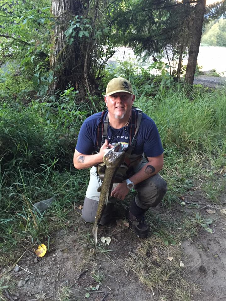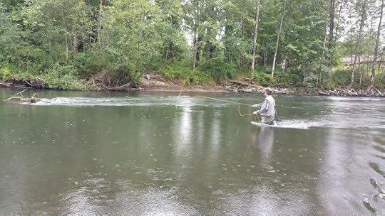 My final fish of the day hit like a locomotive. I was certain this one was twenty or maybe even twenty four inches. But then it shot into the air and I laughed aloud. Perhaps one day it might reach those legendary lengths, but today it was a mere six inches with the heart of a lunker. It fought me harder than the other two together. I let it run, enjoying the moments where a fish was dancing at the end of my poetry. When it finally tired, I landed it and the two of us stood there, in the gray Nisqually, rain pelting us, me laughing, the fish too exhausted to join in. Eventually, it got its wind back, and it left my hand, life lesson learned.