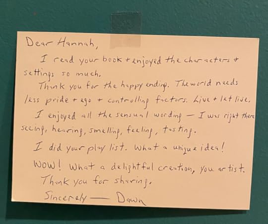 My mom recently gifted her friend Dawn a copy of my novel The Way Back and Dawn wasted very little time in reading it. The other day, I checked the mail and saw I had received a note from her.