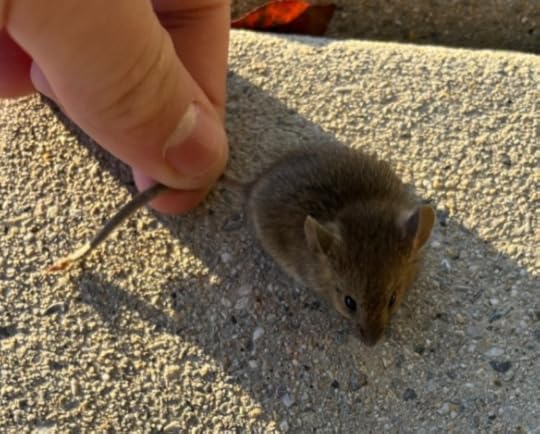 My very brave student, whom we shall call Stuart Big for the purpose of this blog, picked up the mouse by the tail and took him/her outside, where s/he was released into the wild. Here's a picture that Stuart Big took before the mouse's departure: