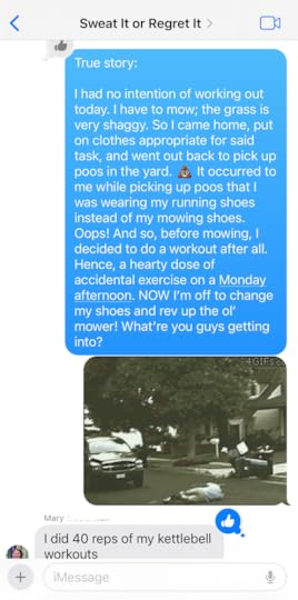 ...and then I sent this text to my Sweat It or Regret It buddies (I just came up with that name today; isn't it funny?):