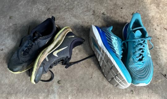 I realized I'd accidentally put on my running shoes instead of my mowing shoes.