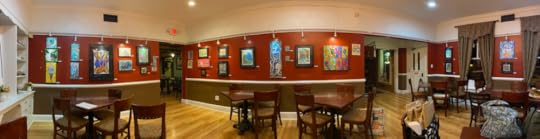 Heather and I hung our art at the Garryowen this evening. Just recently, my mom made the comment, "From now on, I think you and Heather should always do art shows together." And do you know what? She might be onto something. Once all the pieces were on the walls, Heather and I sat back and admired our work, realizing that our styles complement one another so well! The colors... the textures... the subjects...