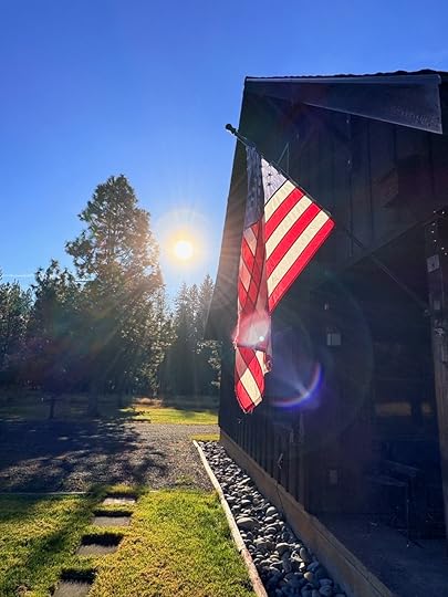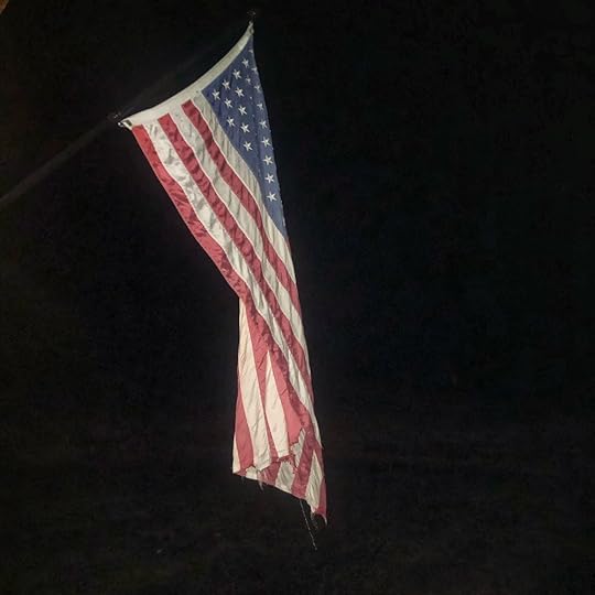 The fire had burned hot and fast, consuming everything. The pile was gone and the air had cleared. It felt as if something had burned away for me too. Looking toward the house, our flag was still hanging there. No longer distorted but definitely tattered and a bit worse for the wear since we purchased it. The morning light was shining through her stars and stripes, and the sun a bright beacon in the distance. She reminded me that our country still stands, even if on different footing.