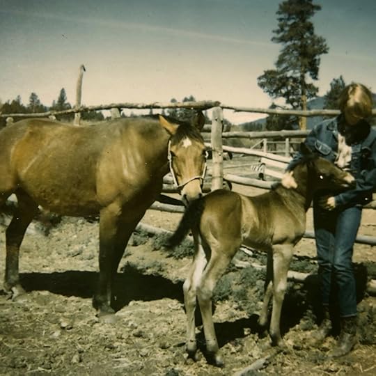 A bay Quarter Horse, she belonged to Dale Tackett. He was a cowboy who worked summers as a wrangler on the guest ranch we visited every summer in Sisters, Oregon. Missy was gentle, wise, wicked good with cattle, and worked with a hackamore bridle called a Bosal. She had a light touch and seemed to know what he wanted before he asked it of her.