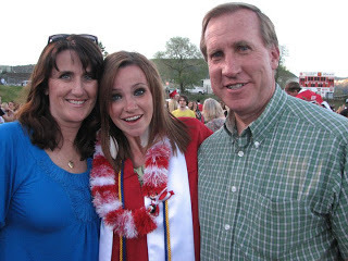 We have our graduation exercises on the football field at our high school. Two years ago, for my older daughter's graduation, it rained and rained. And, to top it off, my youngest daughter barfed all over the man sitting in front of us. This year, thankfully, the weather was perfect and no one was sick.