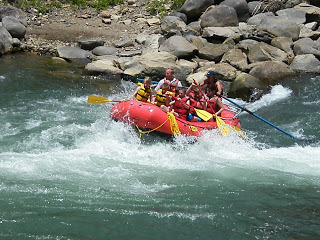 For a belated Father's Day gift, we took my husband river rafting. It was a blast! The water was a little on the freezing side, but we had such a great time, even when it started raining on us. The raindrops hitting the water was mesmerizing. We rafted 5 miles on the beautiful Animas River.