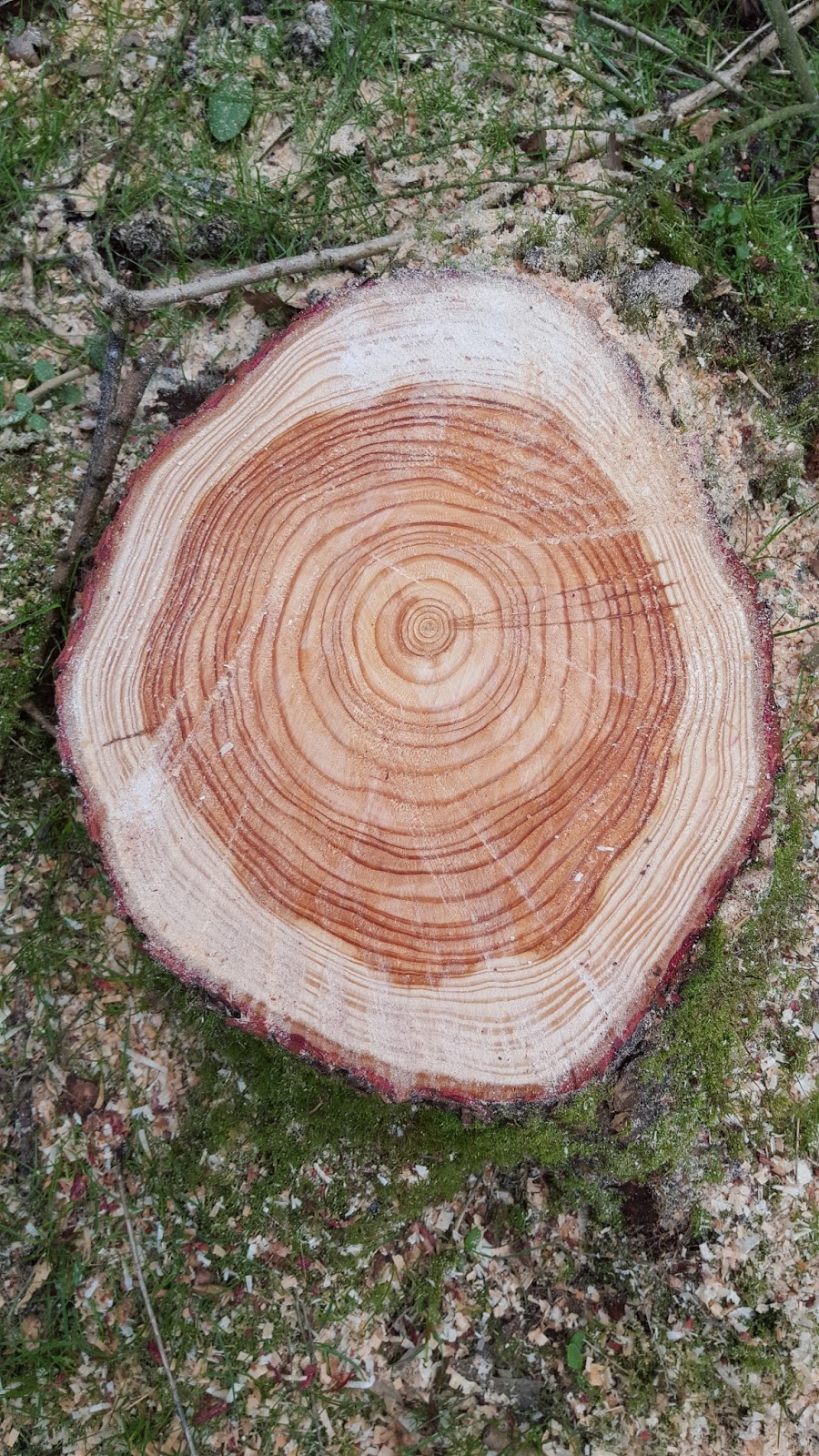 There's a patch of larch in the heart of my wood. They're dark and atmospheric, but I'm working on reducing them in order to give more space to the broadleaves.